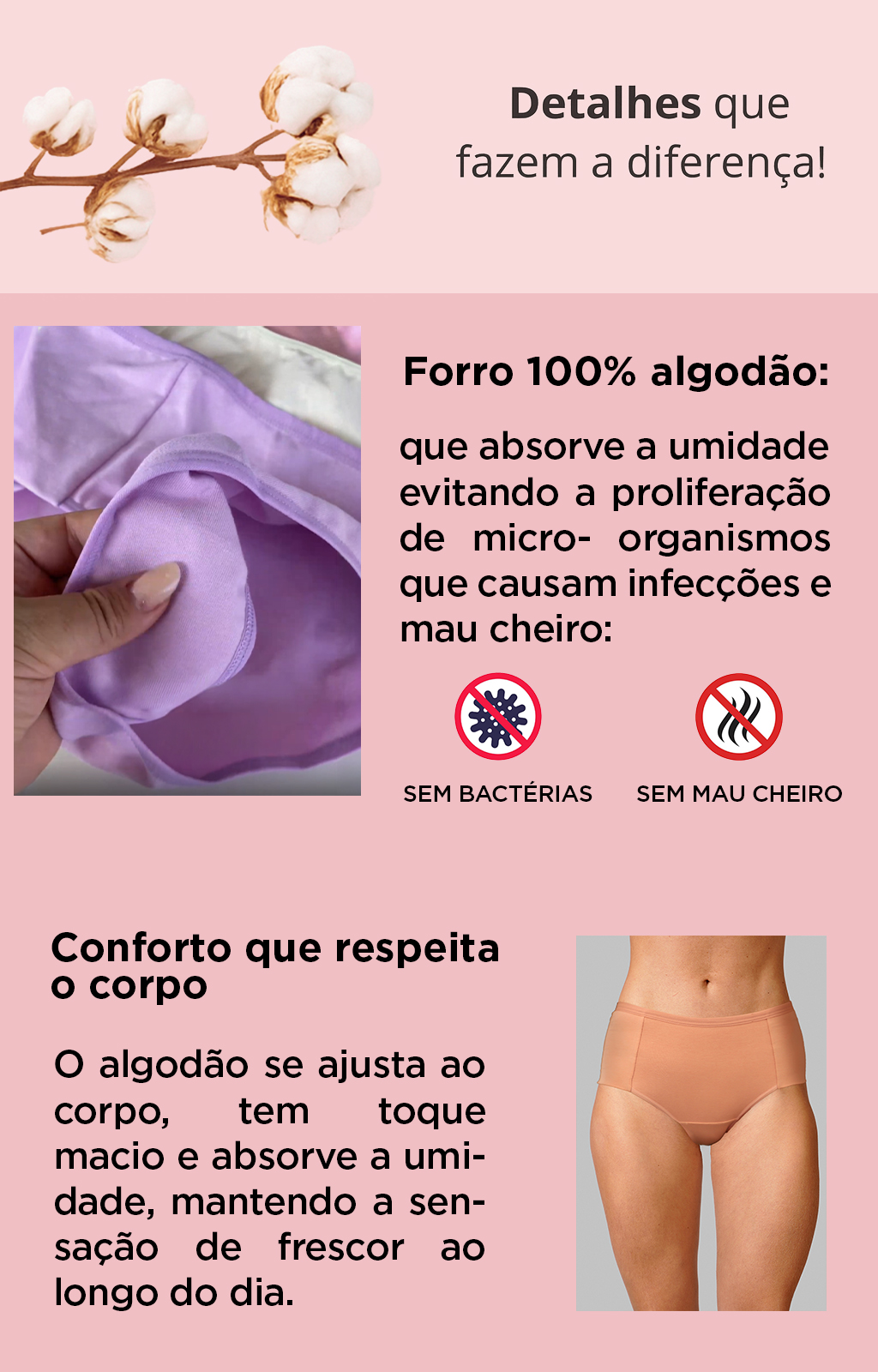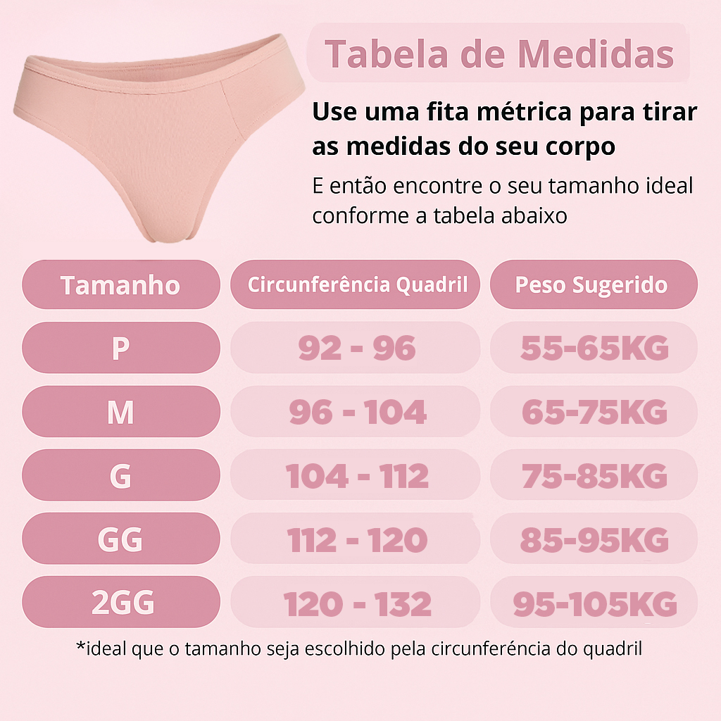 Principais vantagens: - Tecido 100% algodão, garantindo frescor e conforto - Lateral dupla eliminando elástico e aumentando conforto para não marcar no seu corpo.